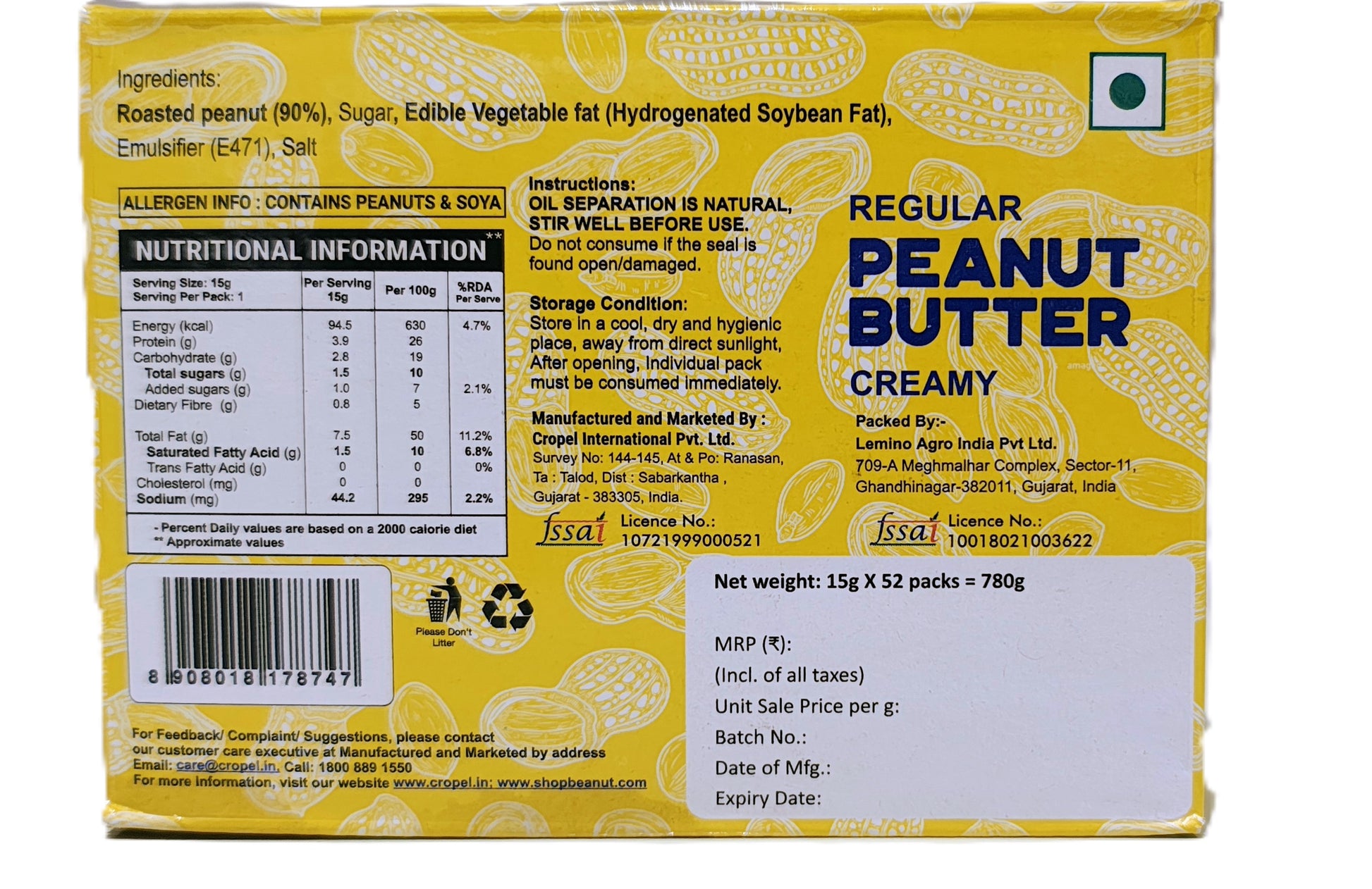Beanut Peanut Butter Creamy Blister - 780gm - High in Protein, Nut Butter, Peanut Butter